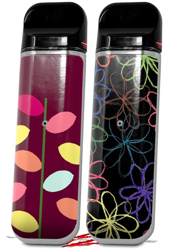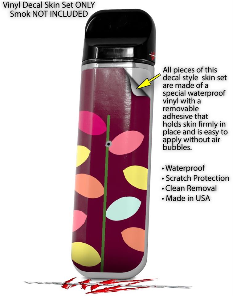 Skin Decal Wrap 2 Pack for Smok Novo v1 Plain Leaves On Burgundy VAPE NOT INCLUDED