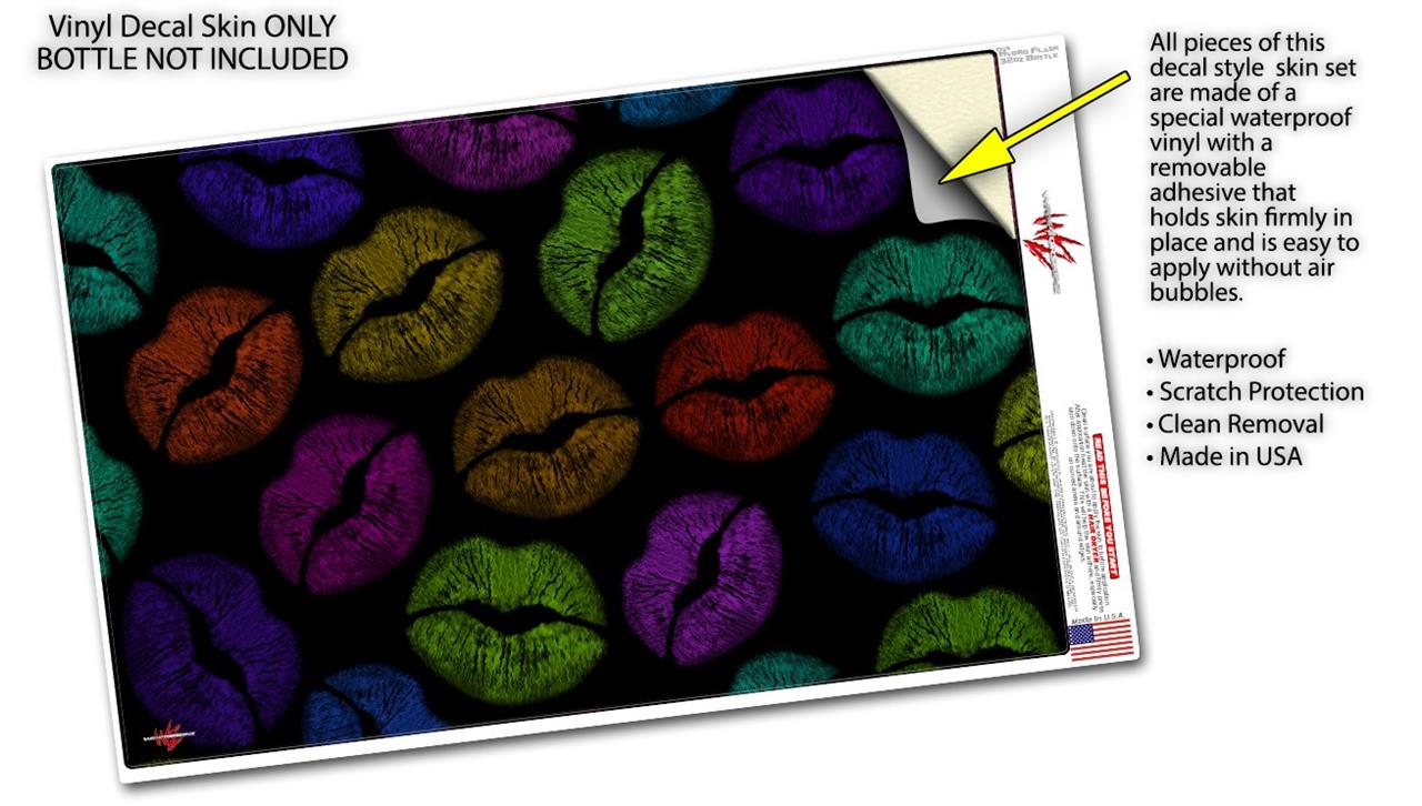 Skin Wrap Decal compatible with Hydro Flask Wide Mouth Bottle 32oz Rainbow Lips Black (BOTTLE NOT INCLUDED)