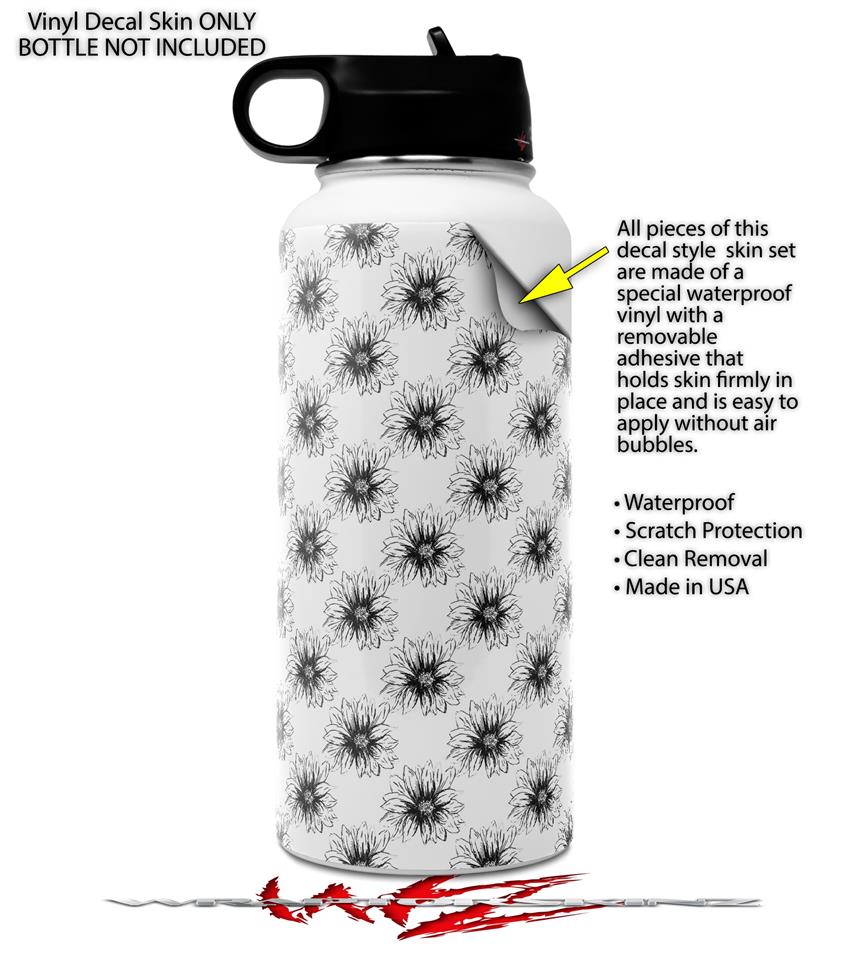 Skin Wrap Decal compatible with Hydro Flask Wide Mouth Bottle 32oz Kearas Daisies Black on White (BOTTLE NOT INCLUDED)