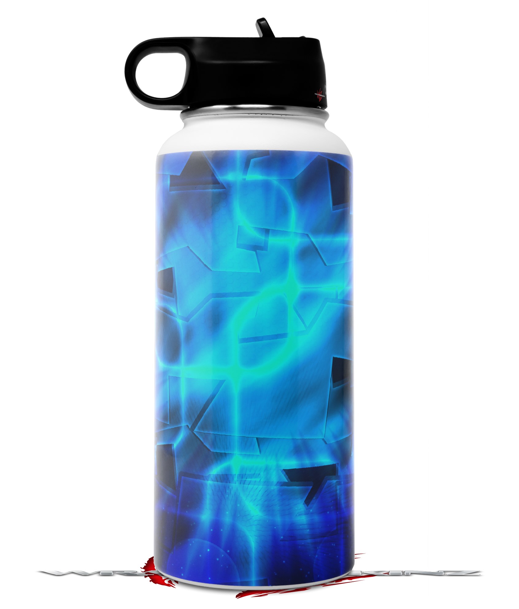 Skin Wrap Decal compatible with Hydro Flask Wide Mouth Bottle 32oz Cubic Shards Blue (BOTTLE NOT INCLUDED)