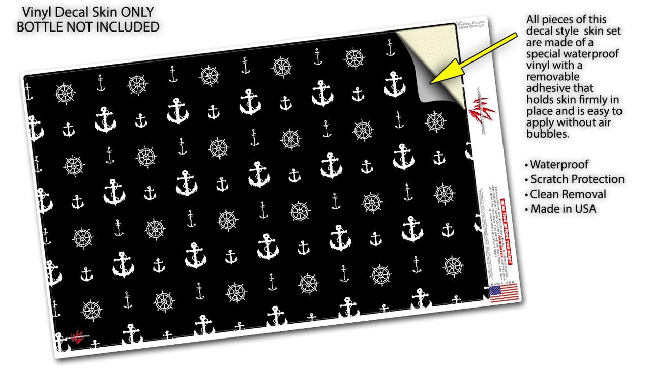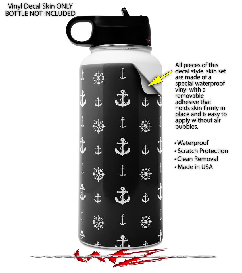 Skin Wrap Decal compatible with Hydro Flask Wide Mouth Bottle 32oz Nautical Anchors Away 02 Black (BOTTLE NOT INCLUDED)