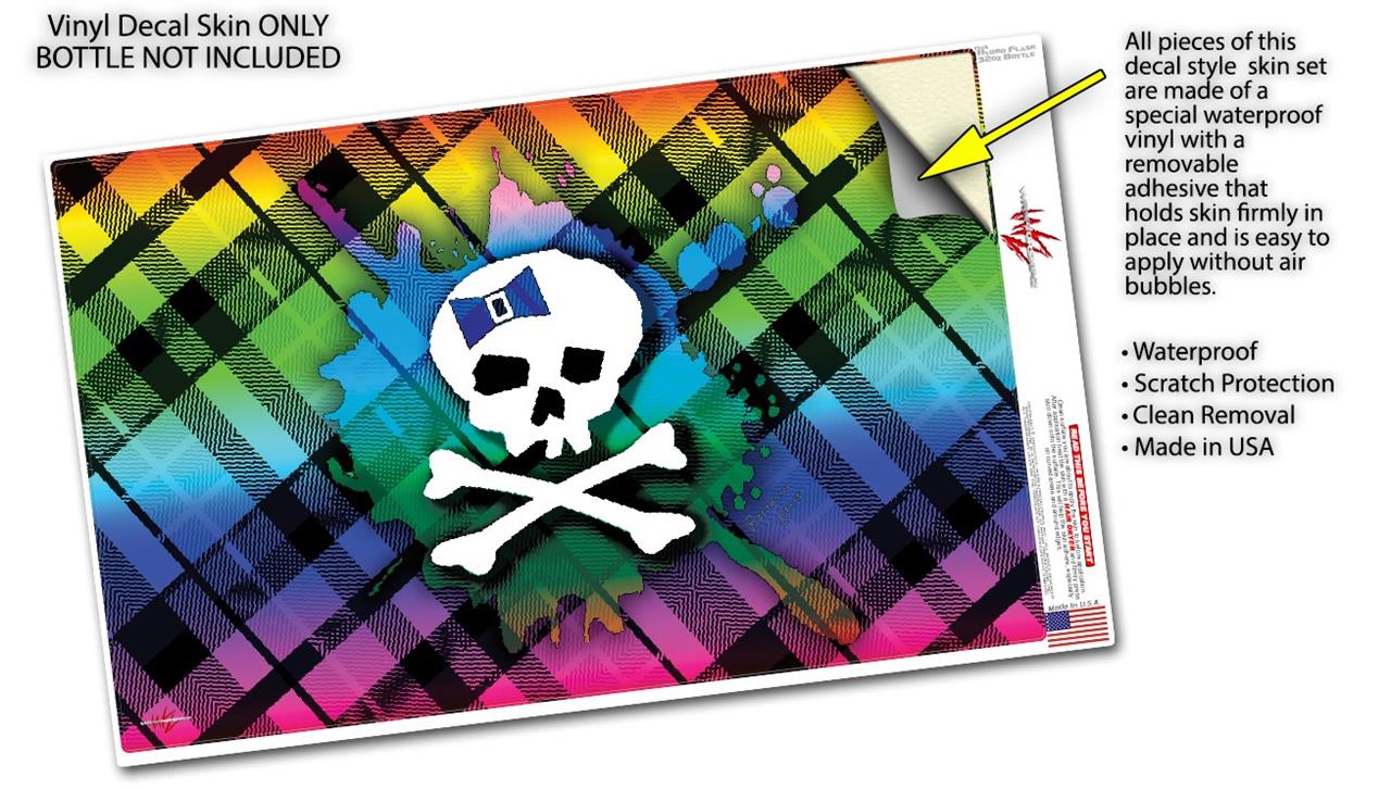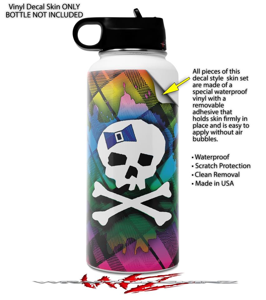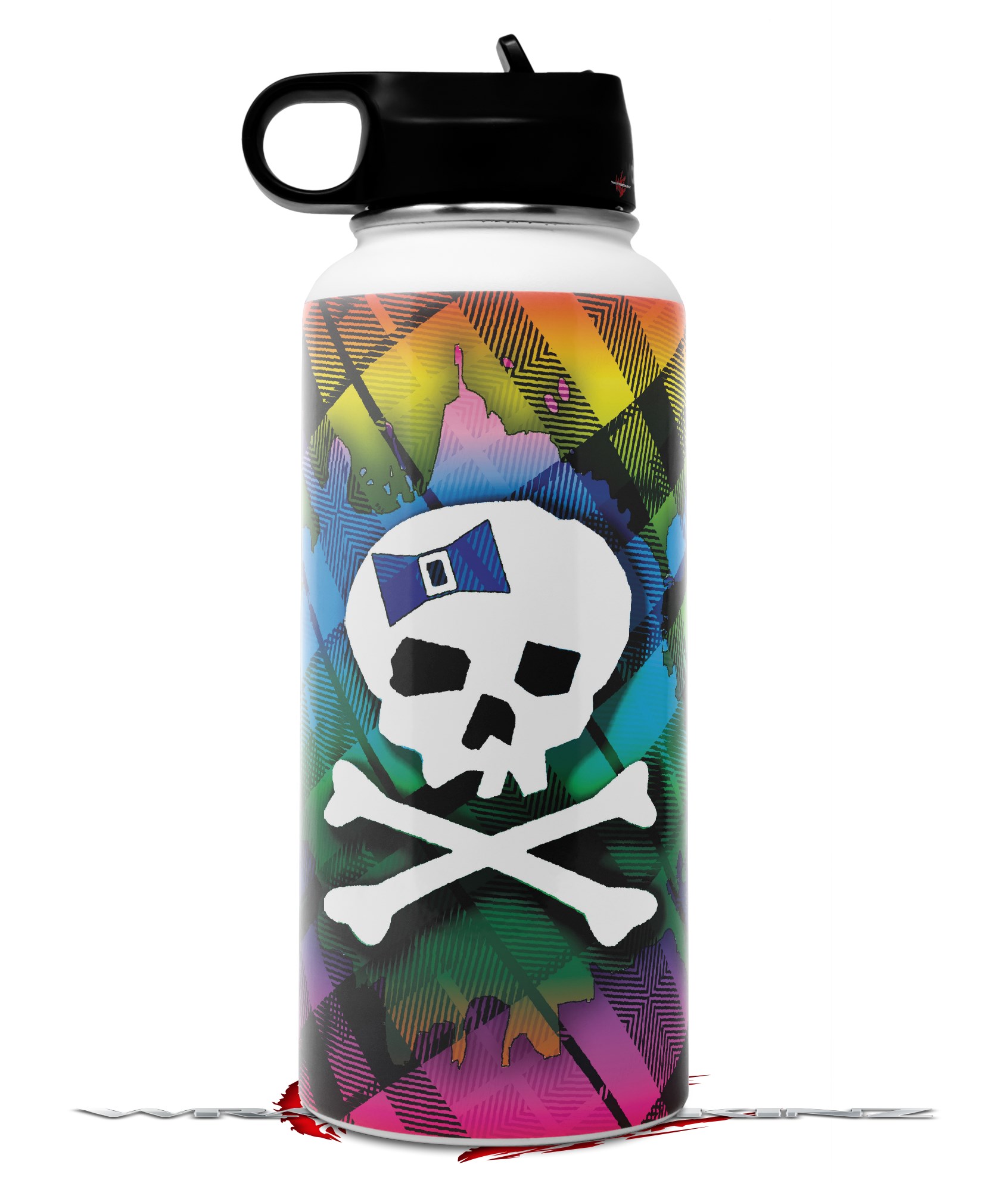 Skin Wrap Decal compatible with Hydro Flask Wide Mouth Bottle 32oz Rainbow Plaid Skull (BOTTLE NOT INCLUDED)
