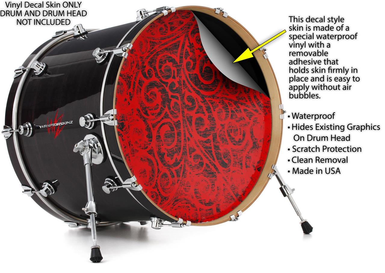 Vinyl Decal Skin Wrap for 22" Bass Kick Drum Head Folder Doodles Red - DRUM HEAD NOT INCLUDED