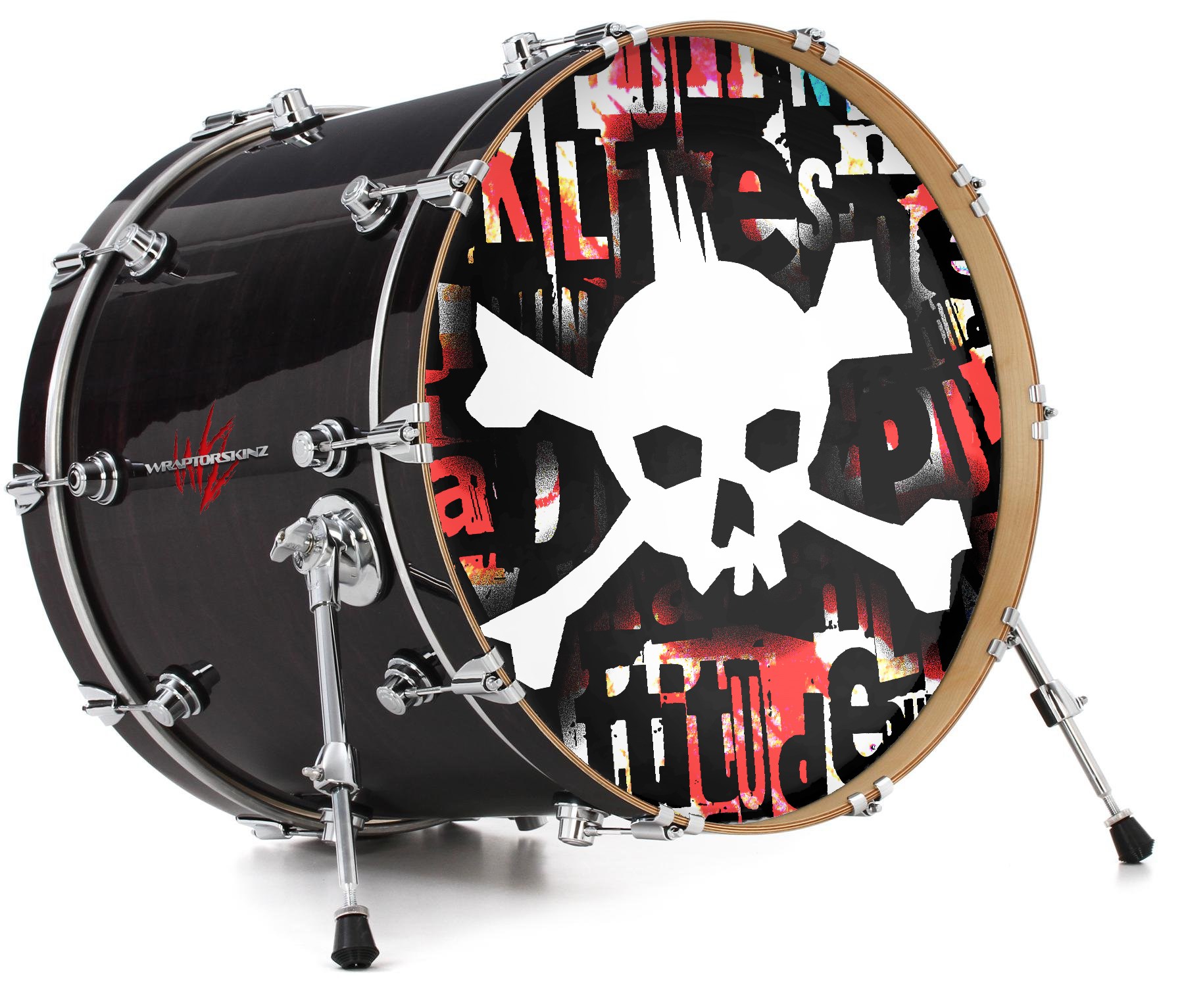 Vinyl Decal Skin Wrap for 22" Bass Kick Drum Head Punk Rock Skull - DRUM HEAD NOT INCLUDED