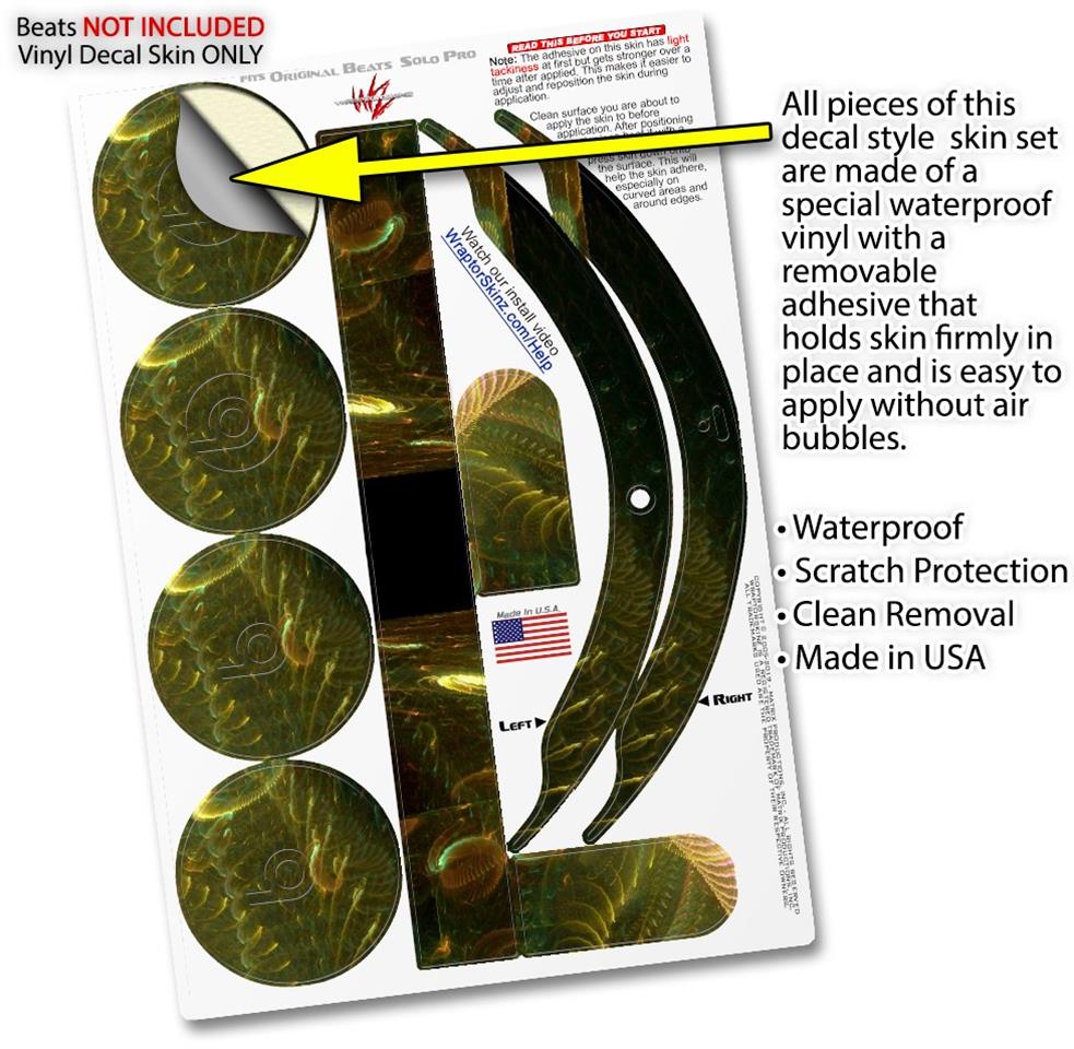 This product is in no way affiliated with or endorsed by Apple or Beats brand products. WraptorSkinz® skin wraps work with the Original Beats Solo Pro version 1 headphones. Printed using superb photo quality designs and vibrant colors printed with special fade resistant inks that last even in direct sun for years. WraptorSkinz are a composite of two layers of commercial grade materials. The bottom layer is a soft, flexible vinyl with a special removable adhesive that is easily positioned, applied without air bubbles. Next, we print the bottom layer with UV protected, fade resistant inks that deliver superb photo quality designs in vibrant colors. Finally, we bond a professional grade laminate over the entire skin adding a glossy protective finish.