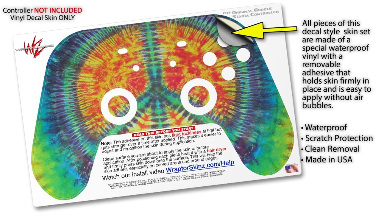 This product is in no way affiliated with or endorsed by Google. WraptorSkinz® skin wraps work with the Original Google Stadia version 1 Controller. Printed using superb photo quality designs and vibrant colors printed with special fade resistant inks that last even in direct sun for years. WraptorSkinz are a composite of two layers of commercial grade materials. The bottom layer is a soft, flexible vinyl with a special removable adhesive that is easily positioned, applied without air bubbles. Next, we print the bottom layer with UV protected, fade resistant inks that deliver superb photo quality designs in vibrant colors. Finally, we bond a professional grade laminate over the entire skin adding a glossy protective finish.