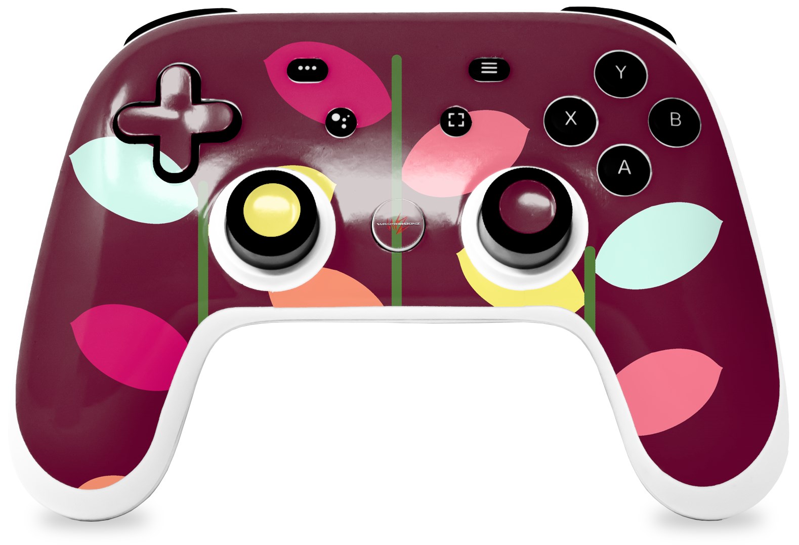 Skin Decal Wrap works with Original Google Stadia Controller Plain Leaves On Burgundy Skin Only CONTROLLER NOT INCLUDED