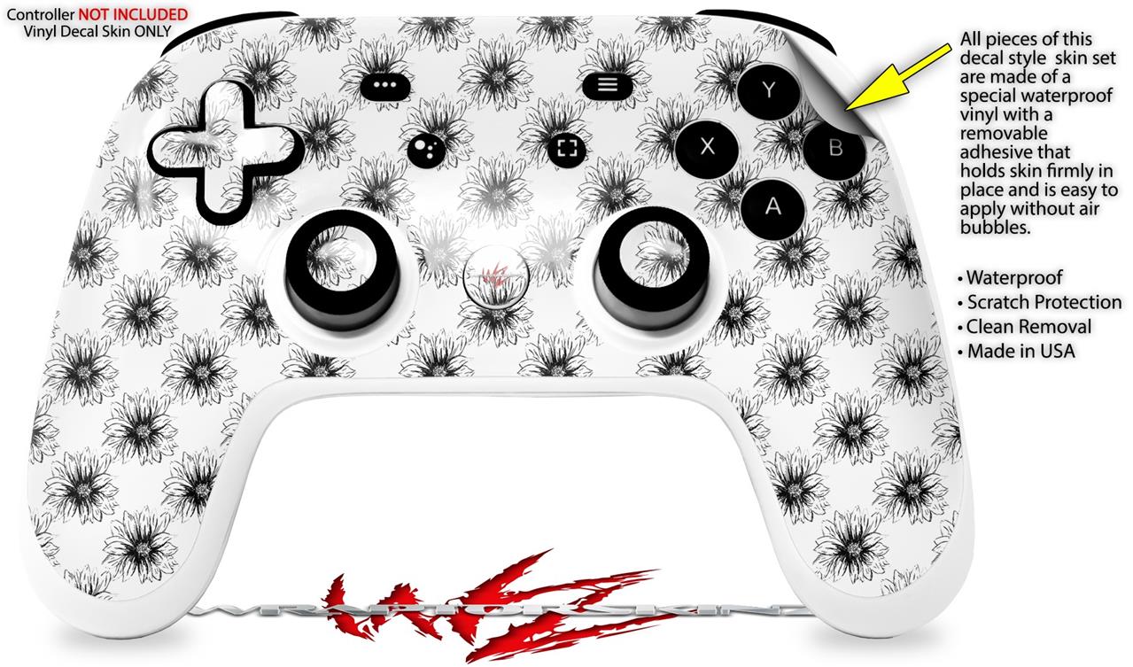 Skin Decal Wrap works with Original Google Stadia Controller Kearas Daisies Black on White Skin Only CONTROLLER NOT INCLUDED