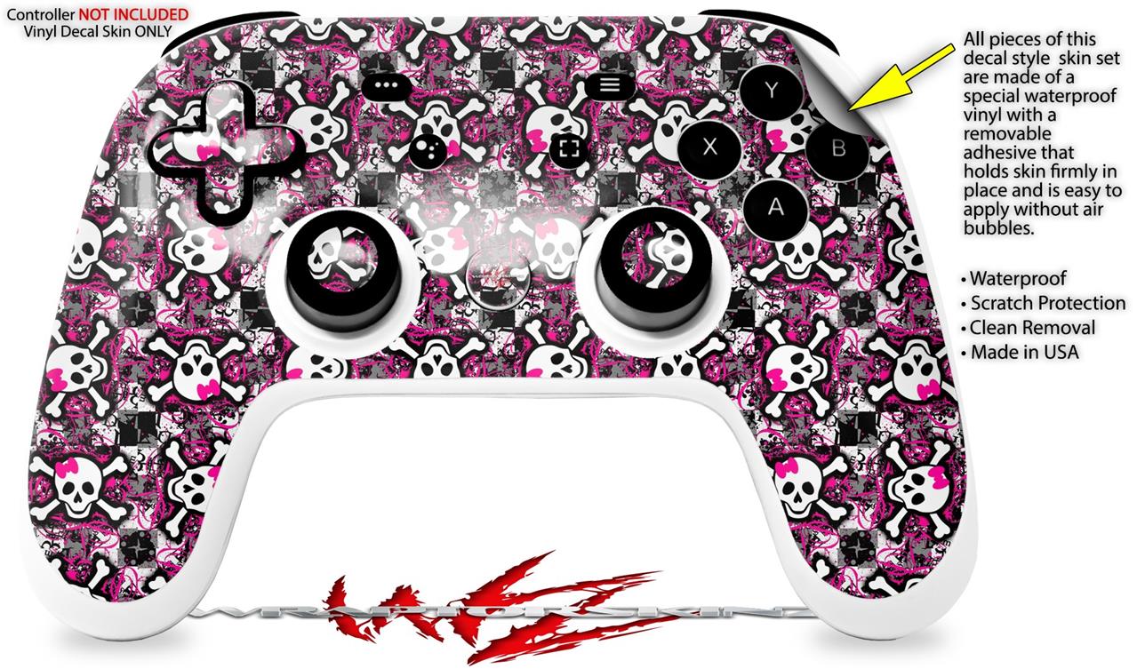 Skin Decal Wrap works with Original Google Stadia Controller Splatter Girly Skull Pink Skin Only CONTROLLER NOT INCLUDED