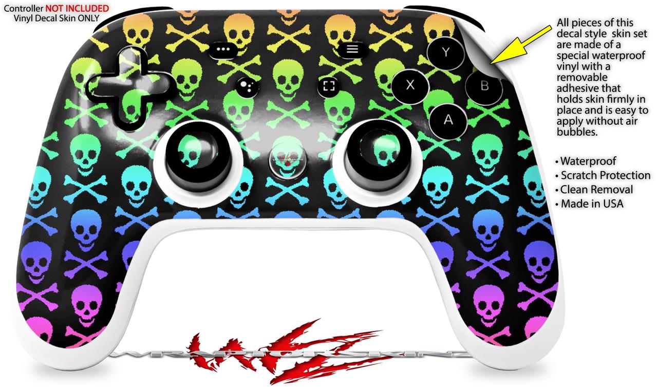 Skin Decal Wrap works with Original Google Stadia Controller Skull and Crossbones Rainbow Skin Only CONTROLLER NOT INCLUDED