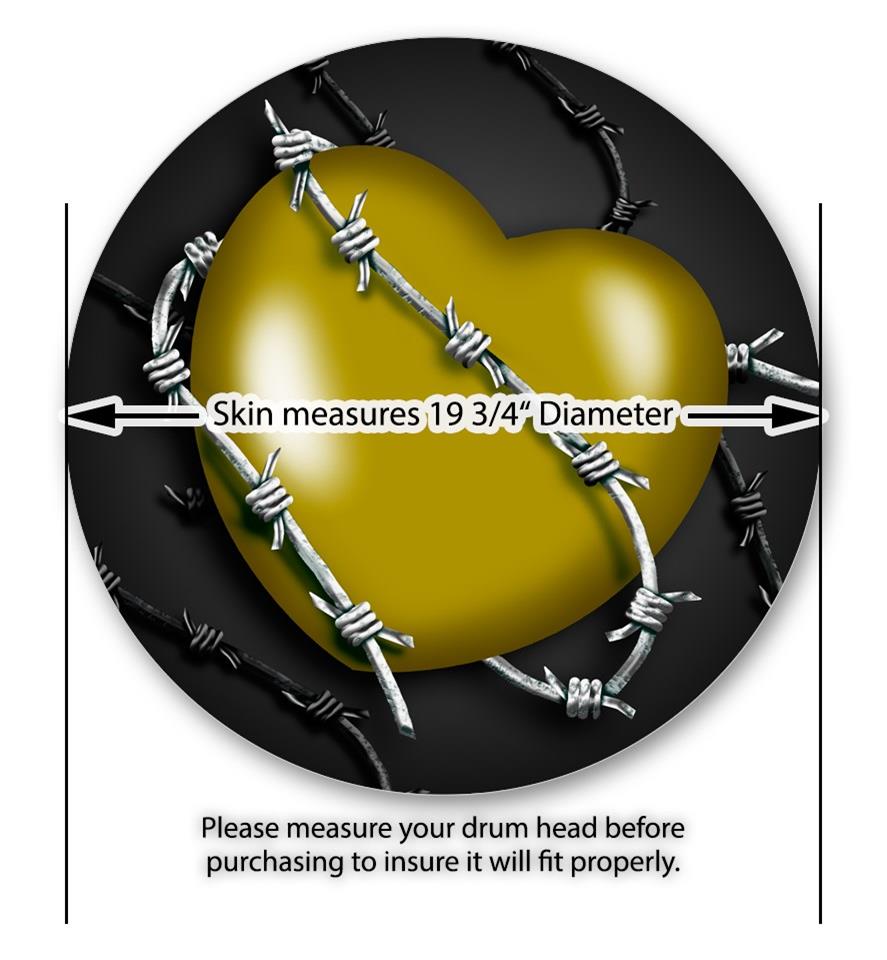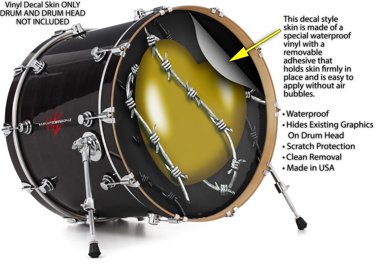 Vinyl Decal Skin Wrap for 20" Bass Kick Drum Head Barbwire Heart Yellow - DRUM HEAD NOT INCLUDED