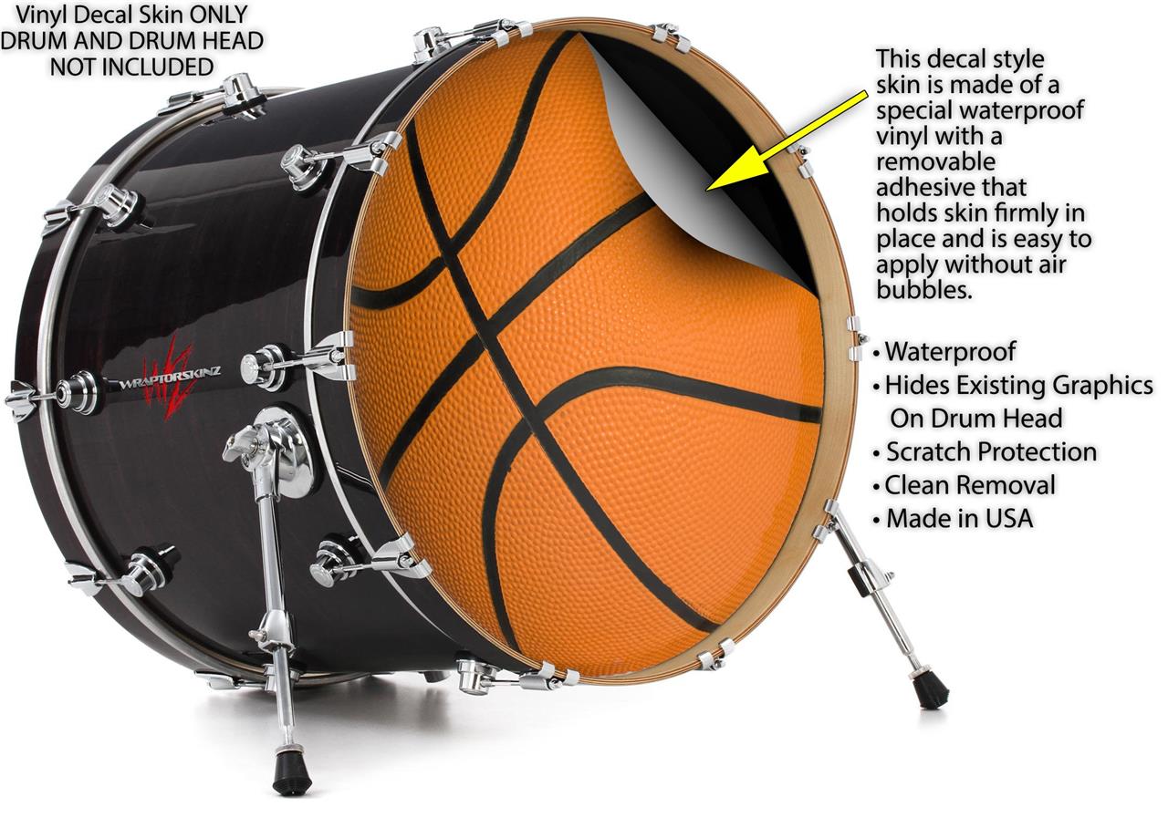 Vinyl Decal Skin Wrap for 20" Bass Kick Drum Head Basketball - DRUM HEAD NOT INCLUDED