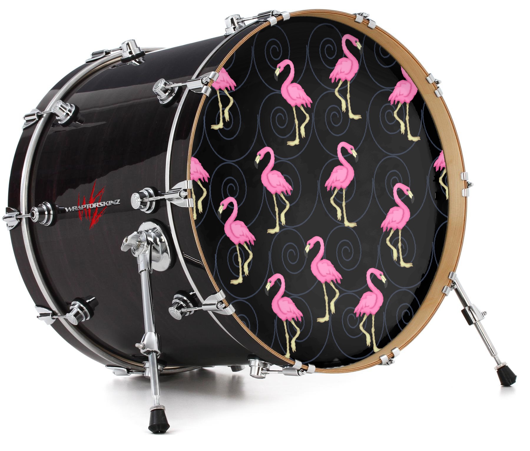 Vinyl Decal Skin Wrap for 20" Bass Kick Drum Head Flamingos on Black - DRUM HEAD NOT INCLUDED