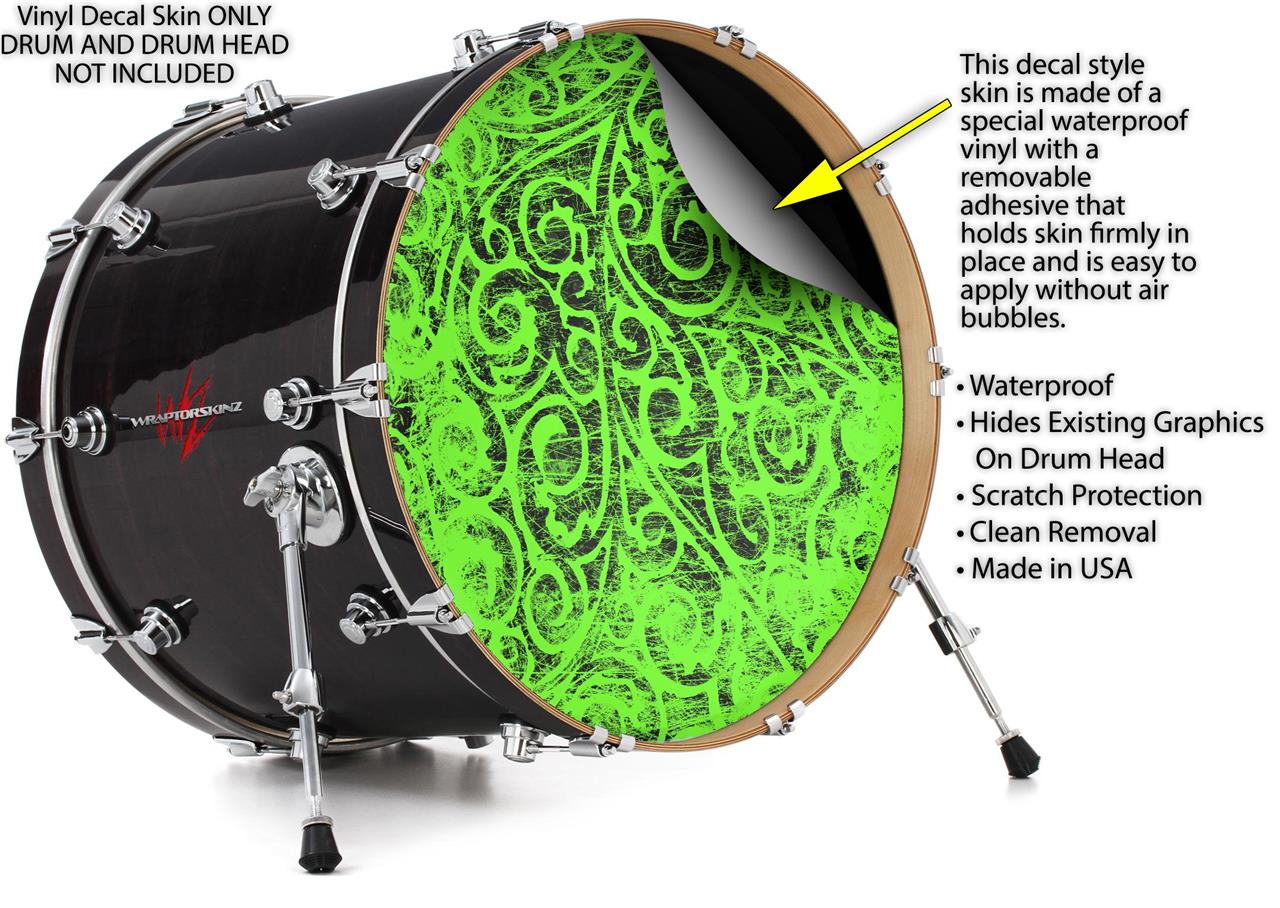 Vinyl Decal Skin Wrap for 20" Bass Kick Drum Head Folder Doodles Neon Green - DRUM HEAD NOT INCLUDED