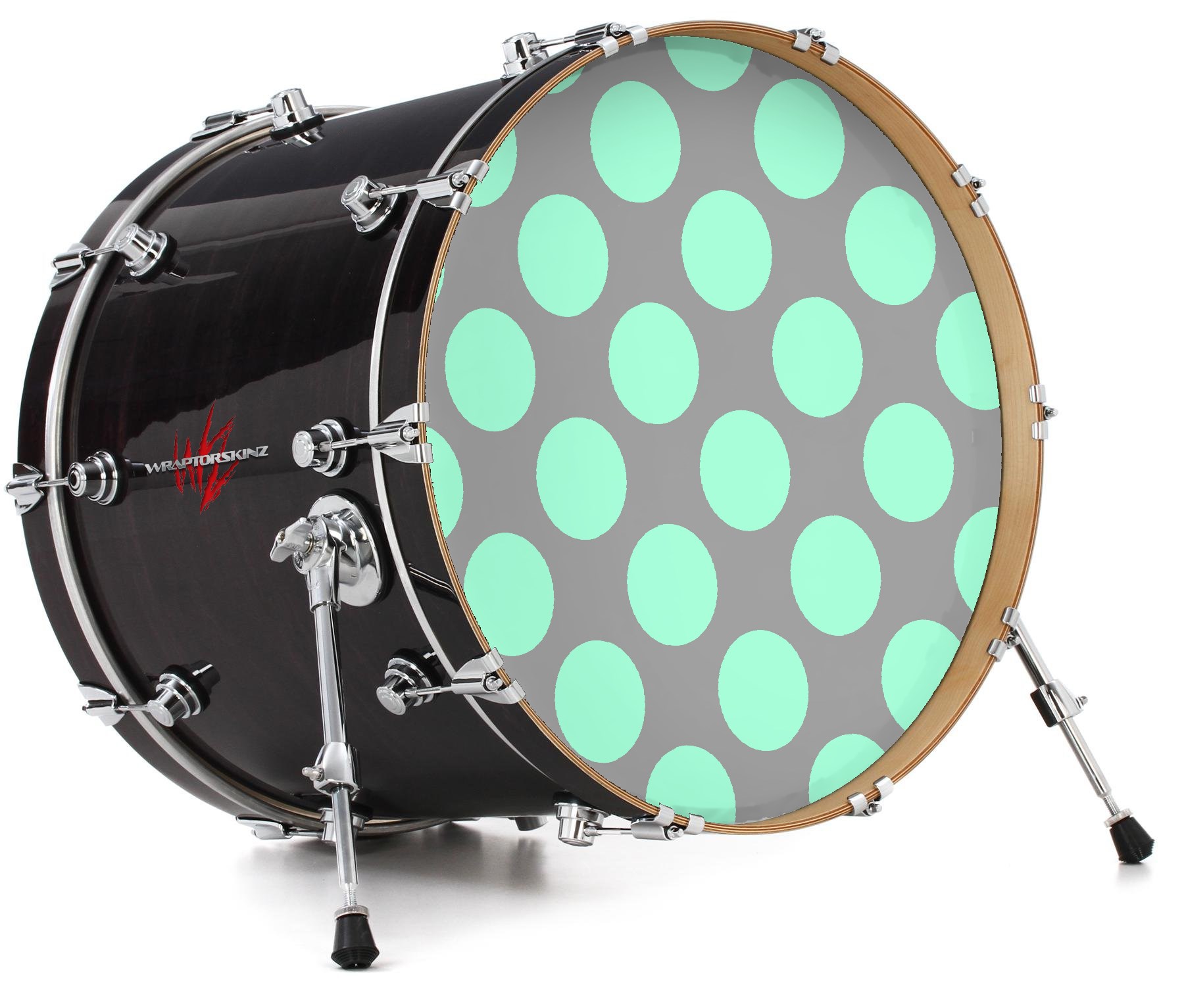 Vinyl Decal Skin Wrap for 20" Bass Kick Drum Head Kearas Polka Dots Mint And Gray - DRUM HEAD NOT INCLUDED