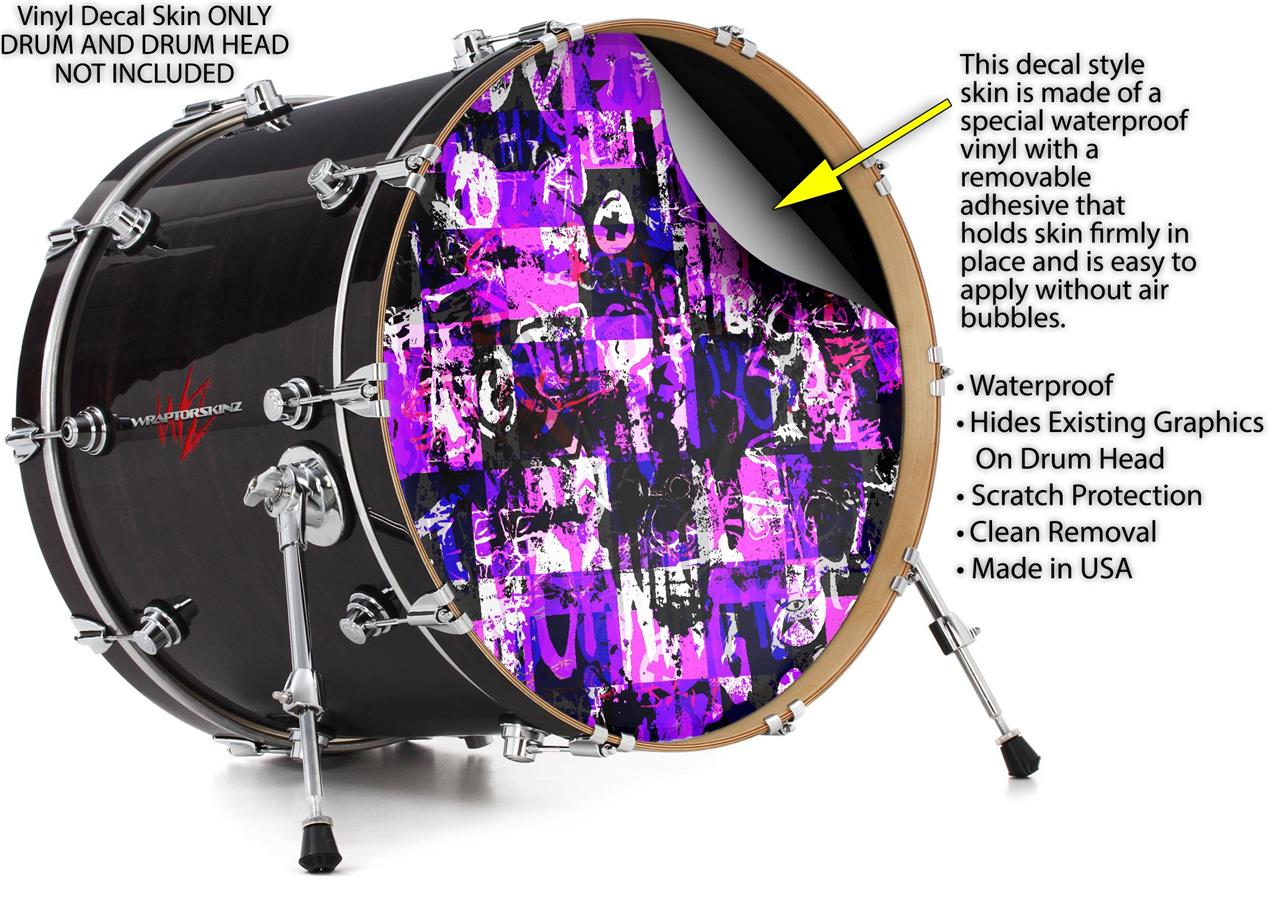 Vinyl Decal Skin Wrap for 20" Bass Kick Drum Head Purple Graffiti - DRUM HEAD NOT INCLUDED