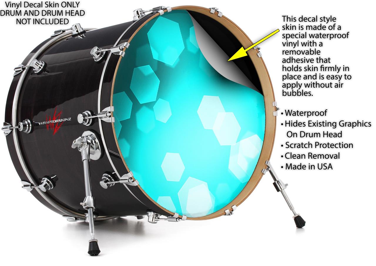 Vinyl Decal Skin Wrap for 20" Bass Kick Drum Head Bokeh Hex Neon Teal - DRUM HEAD NOT INCLUDED