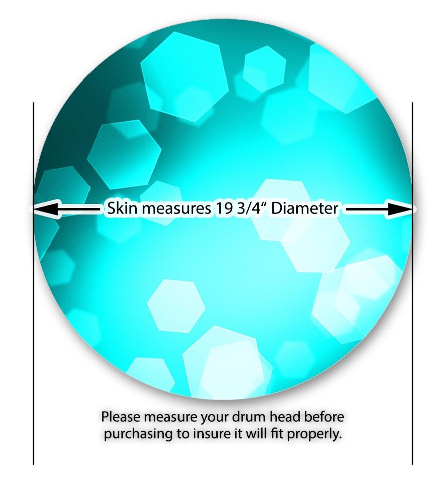 This design also available in other sizes. WraptorSkinz® skin wraps compatible with most kick drum heads. Printed using superb photo quality designs and vibrant colors printed with special fade resistant inks that last even in direct sun for years. WraptorSkinz are a composite three layer commercial grade materials vinyl. The bottom layer is a air release, grey block out removable adhesive that hides existing graphics on the drum head and is easily applied without air bubbles. The middle layer is a flexible vinyl printed with UV protected, fade resistant inks that deliver superb photo quality designs in vibrant colors. Finally, we bond a professional grade laminate over the entire skin adding a glossy protective finish.