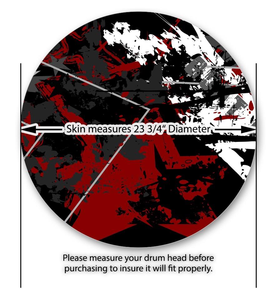 This design also available in other sizes. WraptorSkinz® skin wraps compatible with most kick drum heads. Printed using superb photo quality designs and vibrant colors printed with special fade resistant inks that last even in direct sun for years. WraptorSkinz are a composite three layer commercial grade materials vinyl. The bottom layer is a air release, grey block out removable adhesive that hides existing graphics on the drum head and is easily applied without air bubbles. The middle layer is a flexible vinyl printed with UV protected, fade resistant inks that deliver superb photo quality designs in vibrant colors. Finally, we bond a professional grade laminate over the entire skin adding a glossy protective finish.