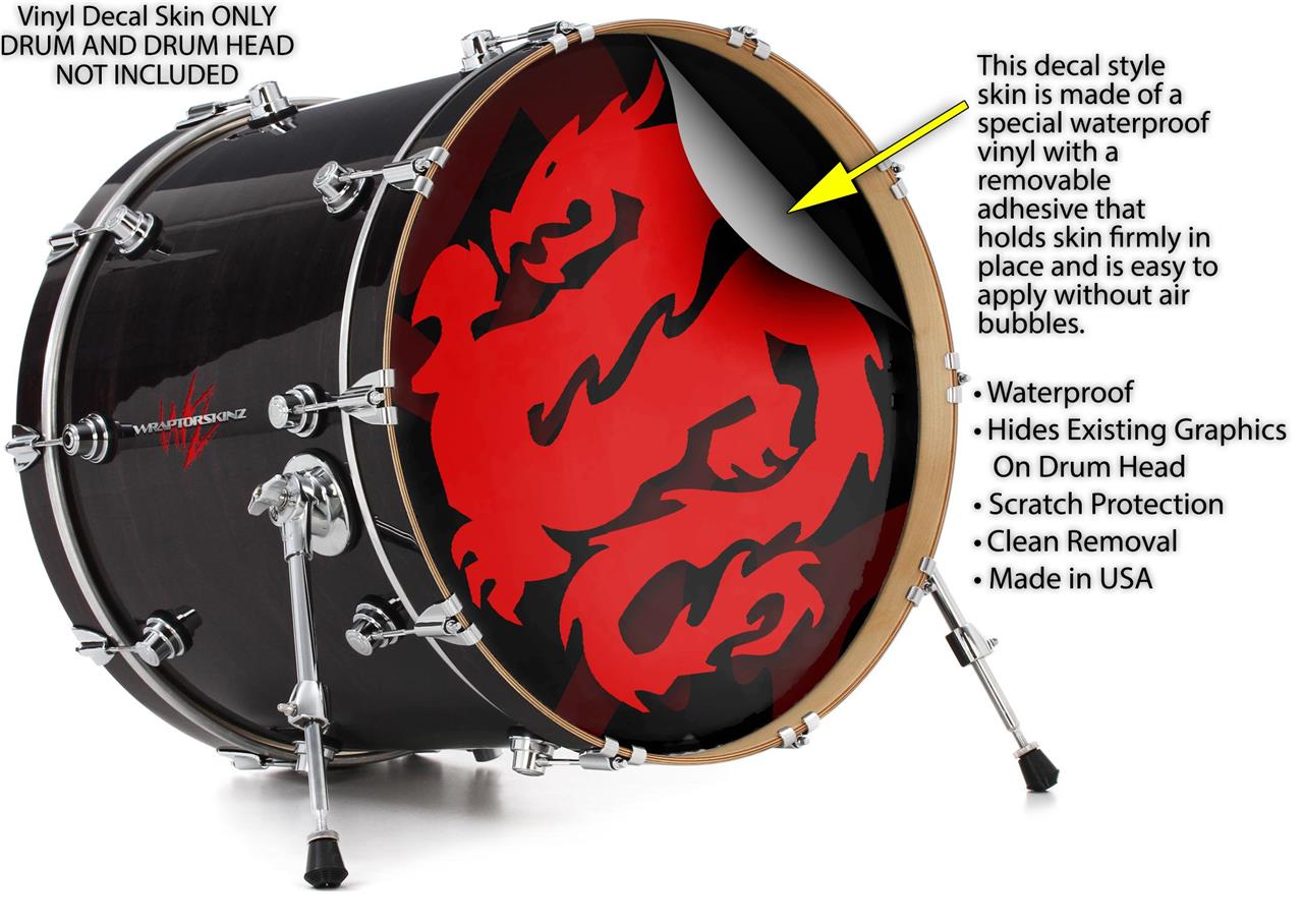 Decal Skin works with most 24" Bass Kick Drum Heads Oriental Dragon Red on Black - DRUM HEAD NOT INCLUDED