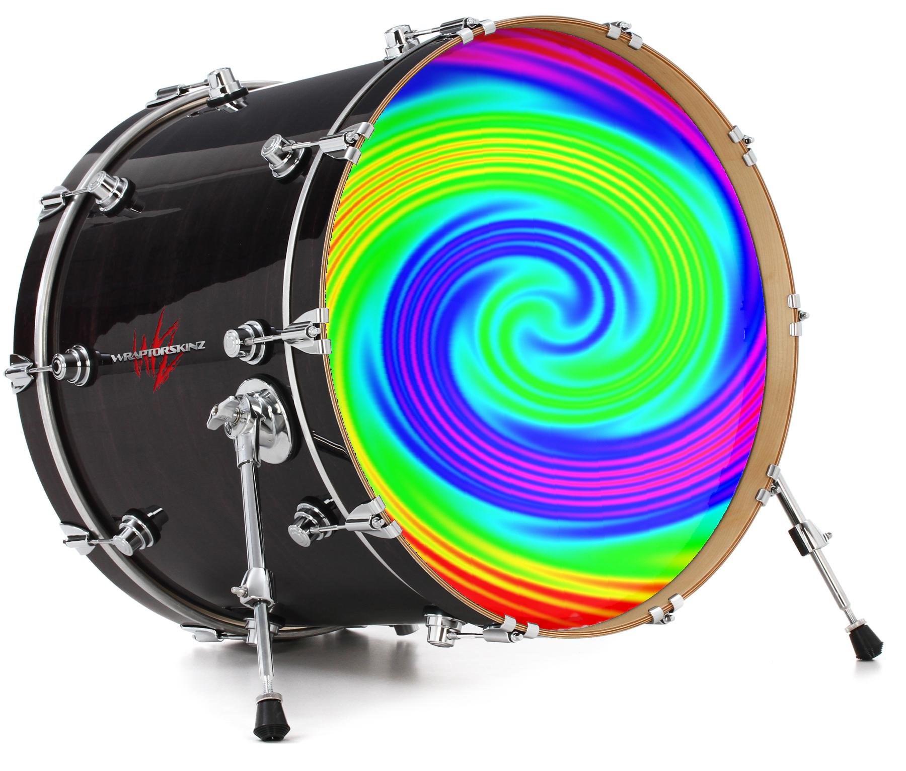 Decal Skin works with most 24" Bass Kick Drum Heads Rainbow Swirl - DRUM HEAD NOT INCLUDED