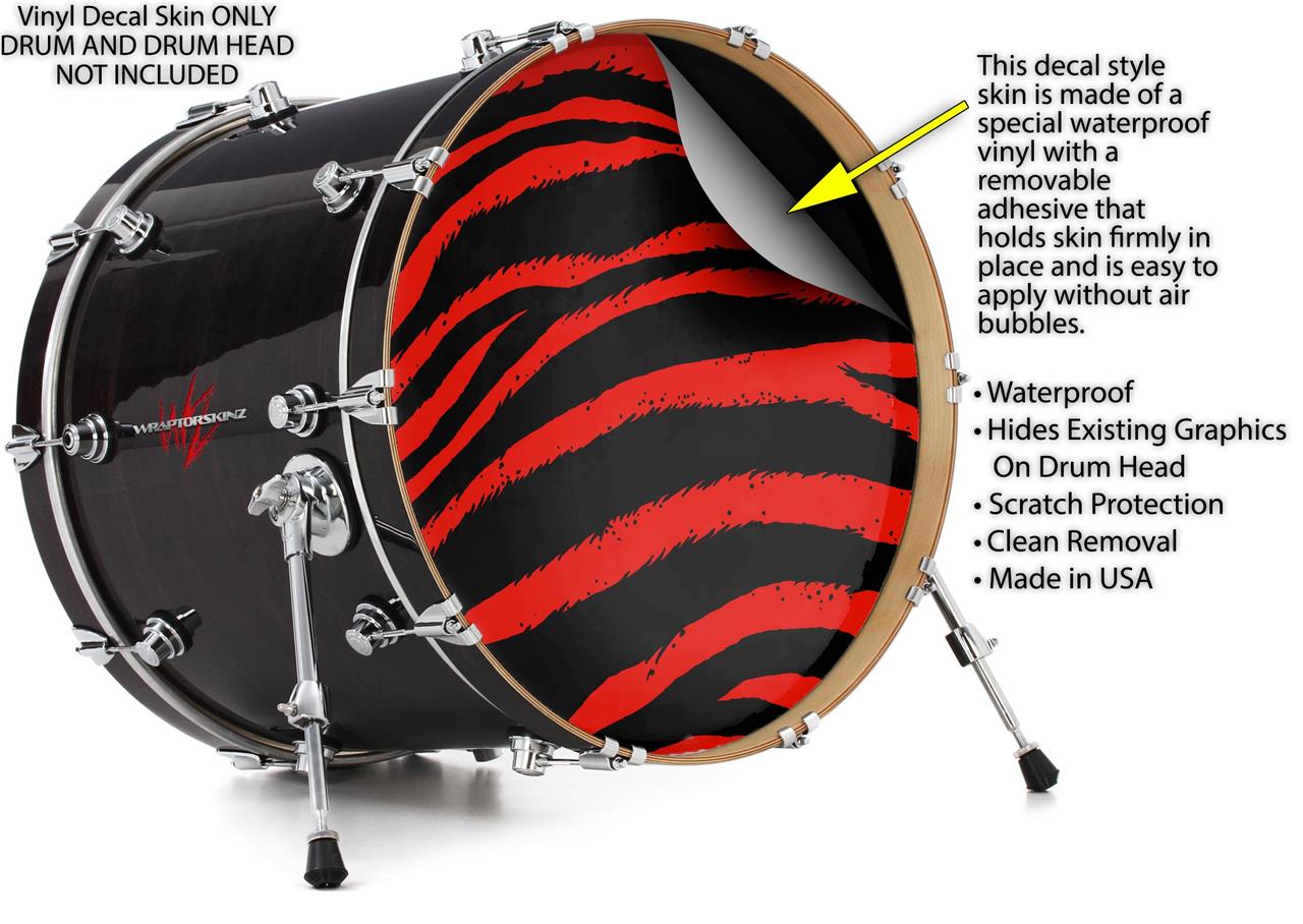 Decal Skin works with most 24" Bass Kick Drum Heads Zebra Red - DRUM HEAD NOT INCLUDED