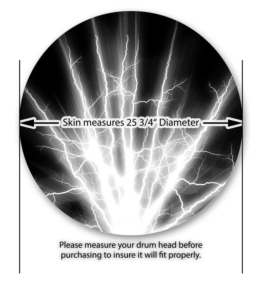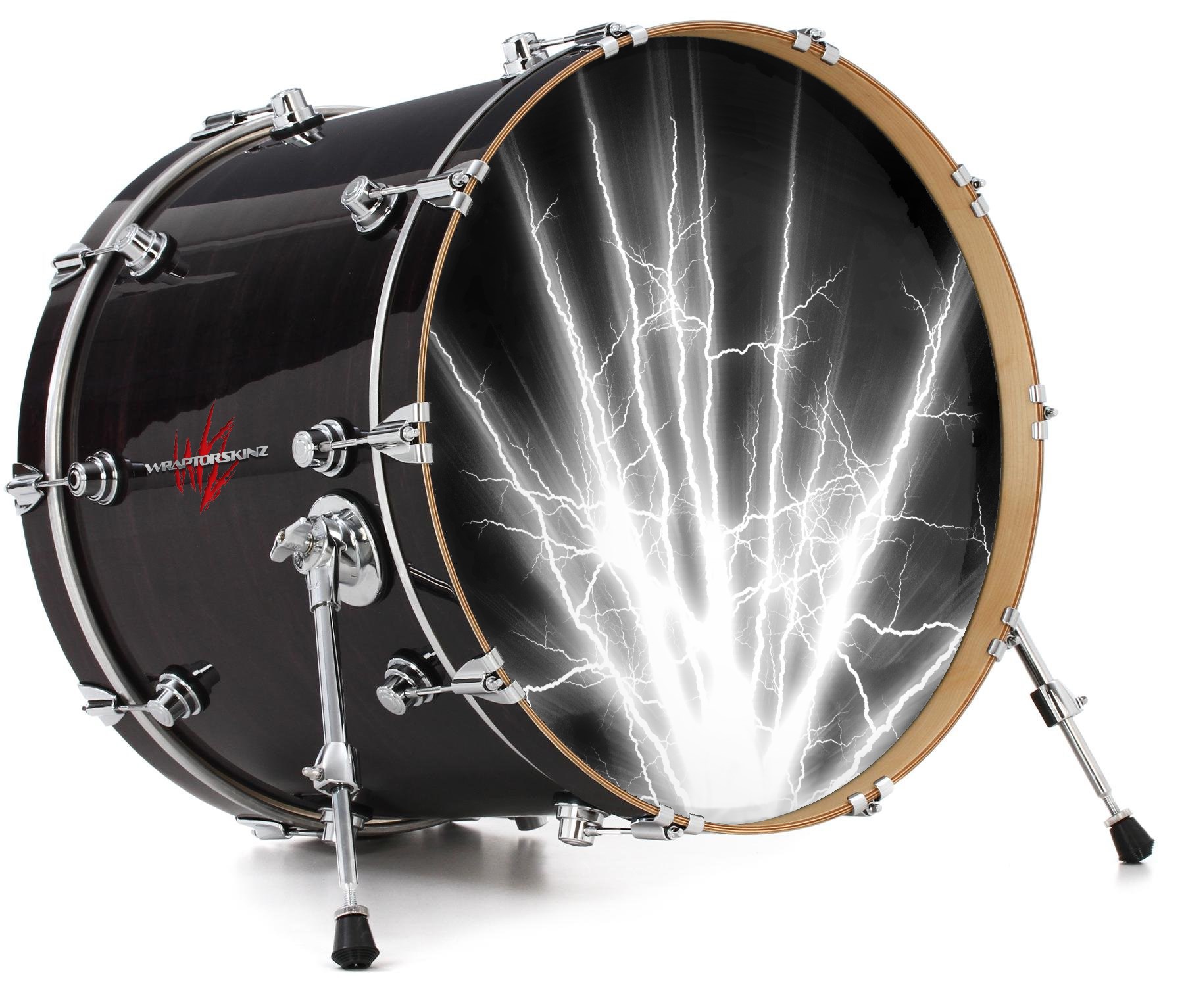 Decal Skin works with most 26" Bass Kick Drum Heads Lightning White - DRUM HEAD NOT INCLUDED