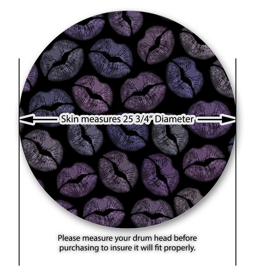 Decal Skin works with most 26" Bass Kick Drum Heads Purple And Black Lips - DRUM HEAD NOT INCLUDED
