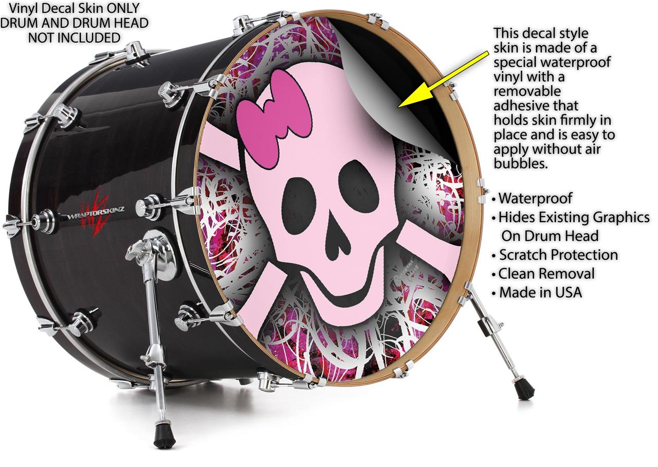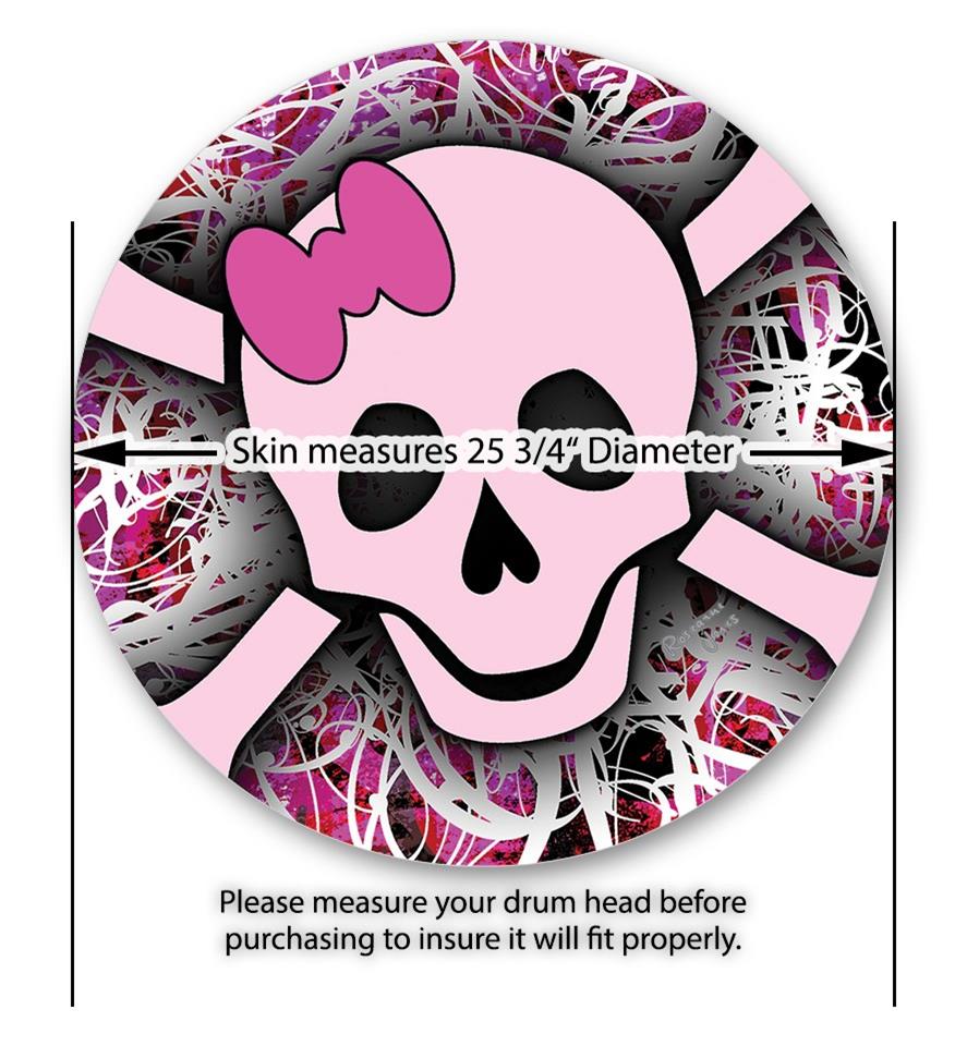 Decal Skin works with most 26" Bass Kick Drum Heads Pink Skull - DRUM HEAD NOT INCLUDED