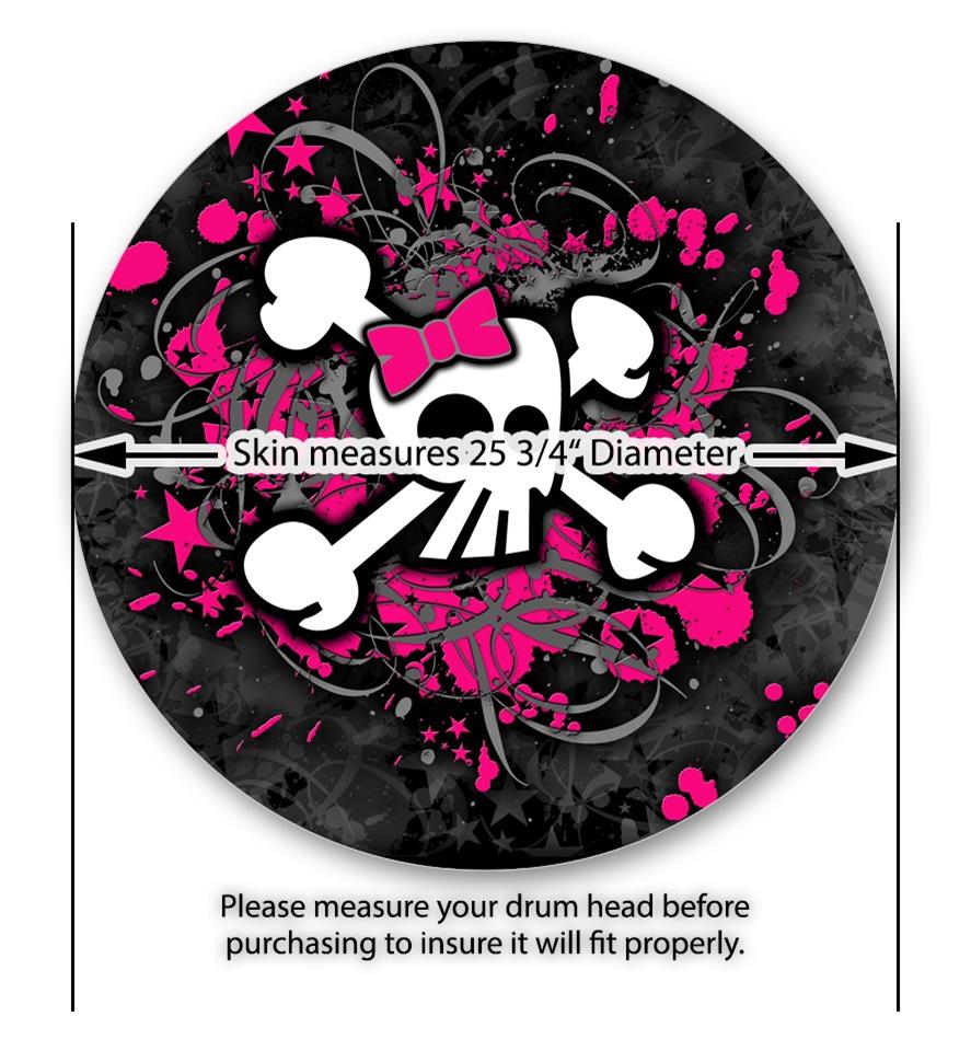 Decal Skin works with most 26" Bass Kick Drum Heads Girly Skull Bones - DRUM HEAD NOT INCLUDED