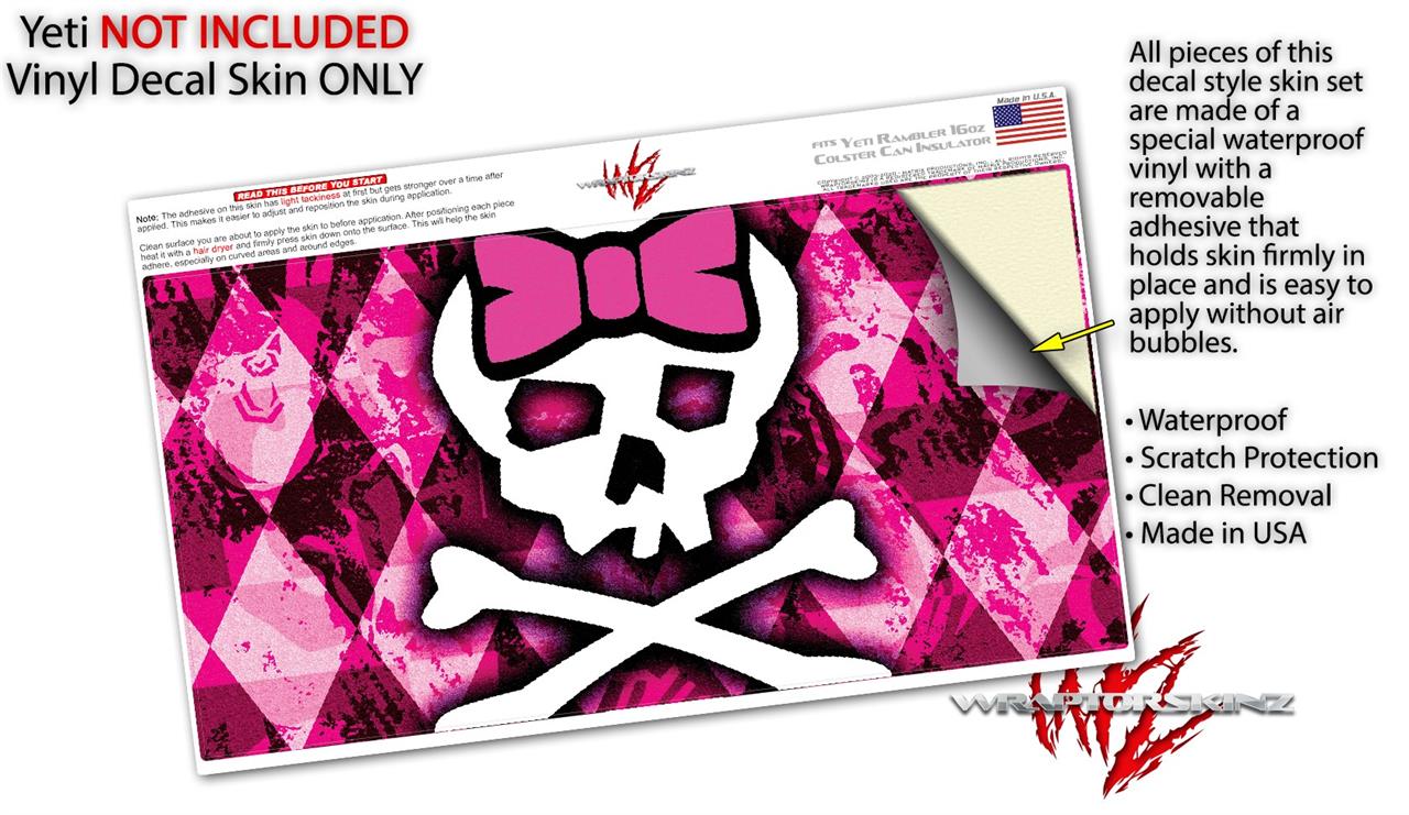 WraptorSkinz Skin Decal Wrap compatible with Yeti 16oz Tall Colster Can Cooler Insulator Pink Bow Princess (COOLER NOT INCLUDED)