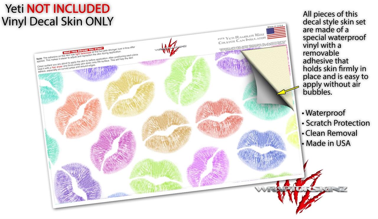 WraptorSkinz Skin Decal Wrap compatible with Yeti 16oz Tall Colster Can Cooler Insulator Rainbow Lips White (COOLER NOT INCLUDED)