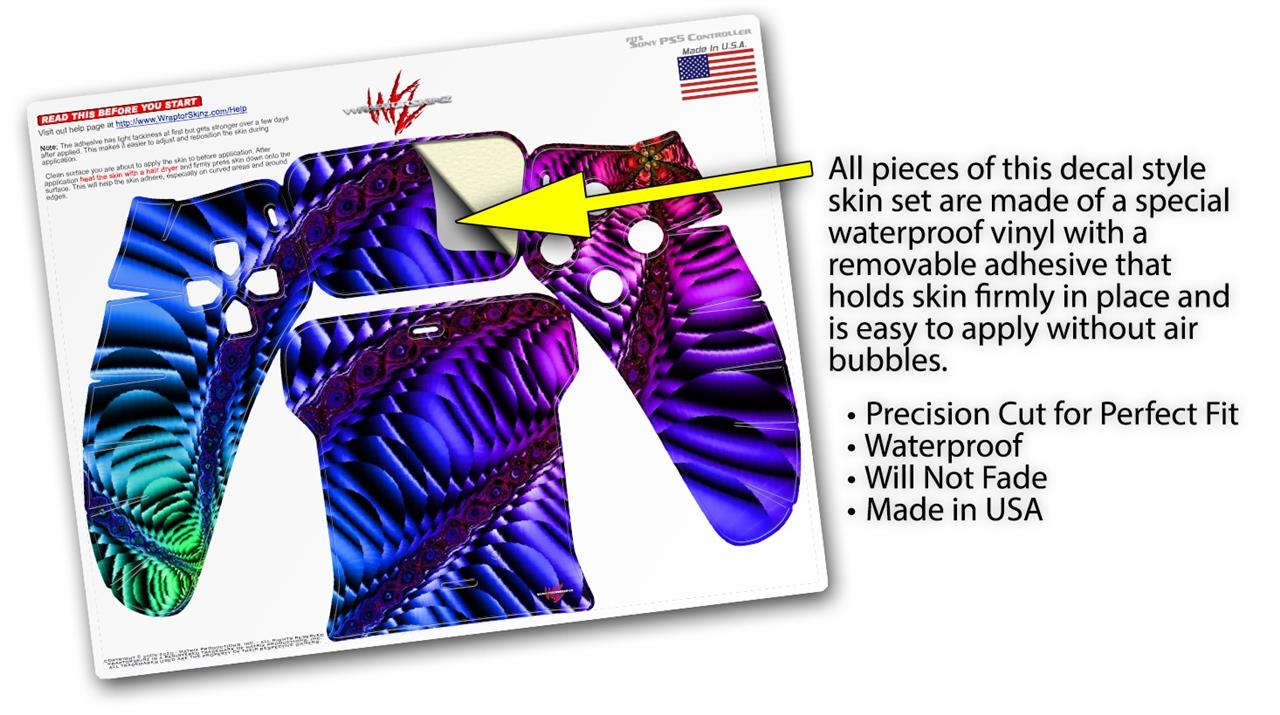 WraptorSkinz® skin wraps for the Sony Playstation 5 controller are printed using superb photo quality designs and vibrant colors printed with special fade resistant inks that last even in direct sun for years. WraptorSkinz are a composite of two layers of commercial grade materials. The bottom layer is a soft, flexible vinyl with a special removable adhesive that is easily positioned, applied without air bubbles. Next we print the bottom layer with UV protected, fade resistant inks that deliver superb photo quality designs in vibrant colors. Last, we bond a professional grade laminate over the entire skin adding a glossy protective finish. This product is not affiliated with or endorsed by Sony or the Playstation brand.