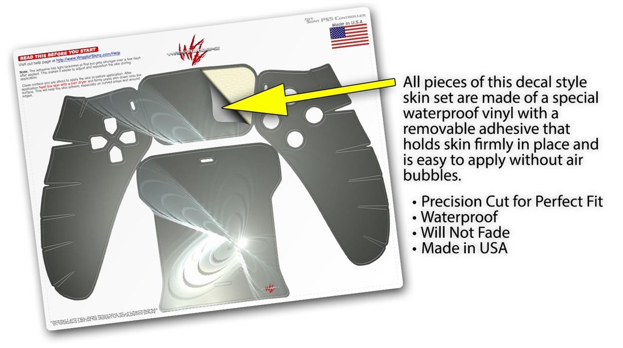 WraptorSkinz® skin wraps for the Sony Playstation 5 controller are printed using superb photo quality designs and vibrant colors printed with special fade resistant inks that last even in direct sun for years. WraptorSkinz are a composite of two layers of commercial grade materials. The bottom layer is a soft, flexible vinyl with a special removable adhesive that is easily positioned, applied without air bubbles. Next we print the bottom layer with UV protected, fade resistant inks that deliver superb photo quality designs in vibrant colors. Last, we bond a professional grade laminate over the entire skin adding a glossy protective finish. This product is not affiliated with or endorsed by Sony or the Playstation brand.