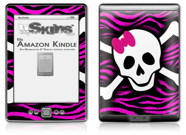 Pink Zebra Skull - Decal Style Skin (fits 4th Gen Kindle with 6inch display and no keyboard)