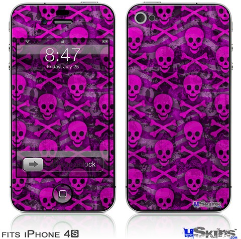 iPhone 4S Decal Style Vinyl Skin - Pink Skull Bones
