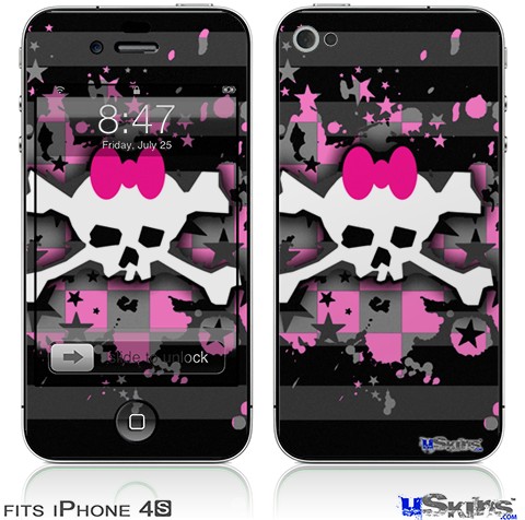 iPhone 4S Decal Style Vinyl Skin - Pink Bow Skull