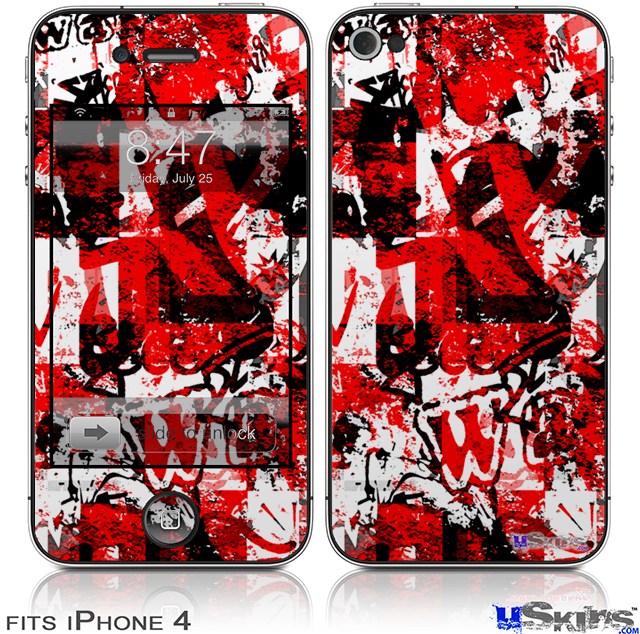 iPhone 4 Decal Style Vinyl Skin - Red Graffiti (DOES NOT fit newer iPhone 4S)