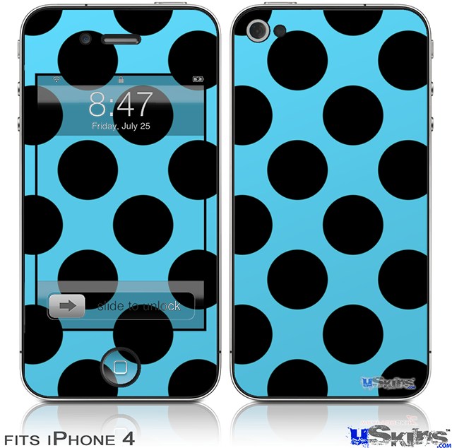 iPhone 4 Decal Style Vinyl Skin - Kearas Polka Dots Black And Blue (DOES NOT fit newer iPhone 4S)