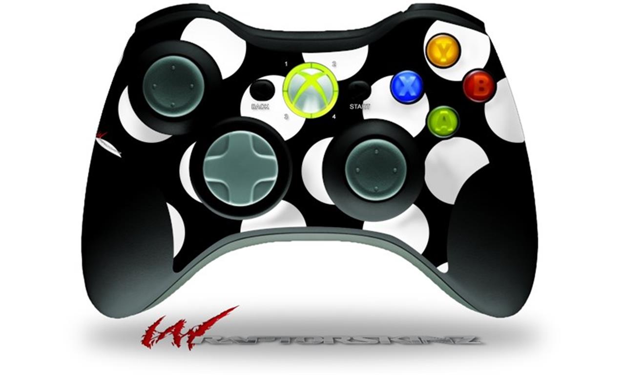 XBOX 360 Wireless Controller Decal Style Skin - Kearas Polka Dots White On Black (CONTROLLER NOT INCLUDED)