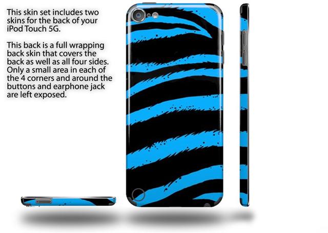 Zebra Blue Decal Style Vinyl Skin - fits Apple iPod Touch 5G (IPOD NOT INCLUDED)