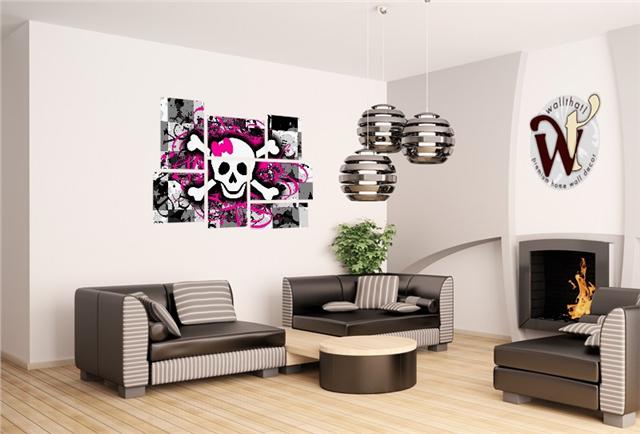 Splatter Girly Skull - 7 Piece Fabric Peel and Stick Wall Skin Art (50x38 inches)