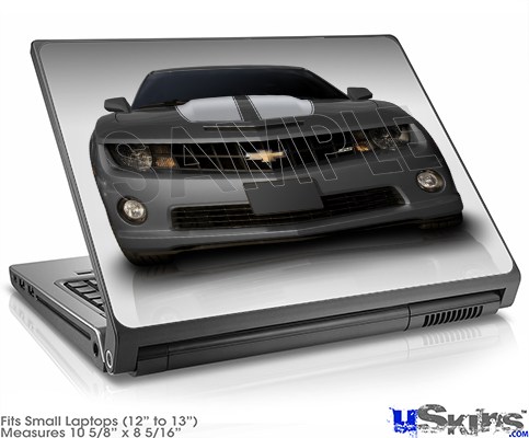 Laptop Skin (Small) - 2010 Chevy Camaro Cyber Gray - White Stripes