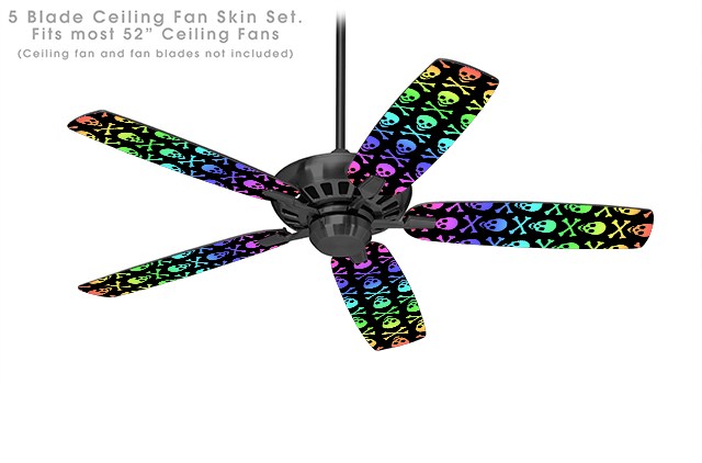 Skull and Crossbones Rainbow - Ceiling Fan Skin Kit fits most 52 inch fans (FAN and BLADES SOLD SEPARATELY)