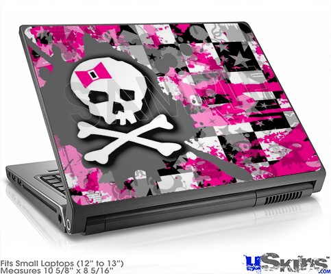 Laptop Skin (Small) - Girly Pink Bow Skull