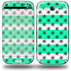 Kearas Daisies Stripe Sea Foam - Decal Style Skin (fits Samsung Galaxy S III S3)
