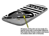 uSkins™ are self adhering vinyl skins that help prevent scratches and look great doing it. Unlike bulky silicon, plastic or metal cases and faceplates, uSkins are designed to be thin and very tough. uSkins are a composite of two layers of commercial grade materials. The bottom layer is a soft, flexible vinyl with a special removable adhesive that is easily positioned, applied without air bubbles, and effortlessly removed without leaving a sticky residue. Next we print the bottom layer with UV protected, fade resistant inks that deliver superb photo quality designs in vibrant colors. Finally we bond a professional grade laminate over the entire skin adding a glossy protective finish.