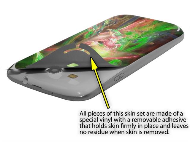• Decal style vinyl skin covers front and back of Samsung Galaxy S III S3 phone.