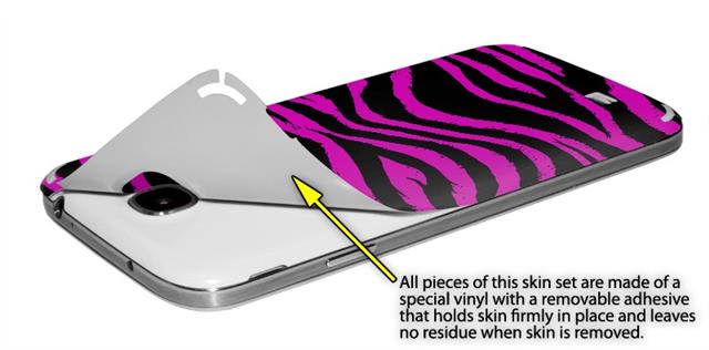 • Decal style vinyl skin covers front and back of Samsung Galaxy S4 phone.