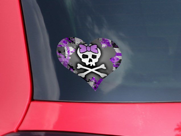 Purple Princess Skull - I Heart Love Car Window Decal 6.5 x 5.5 inches